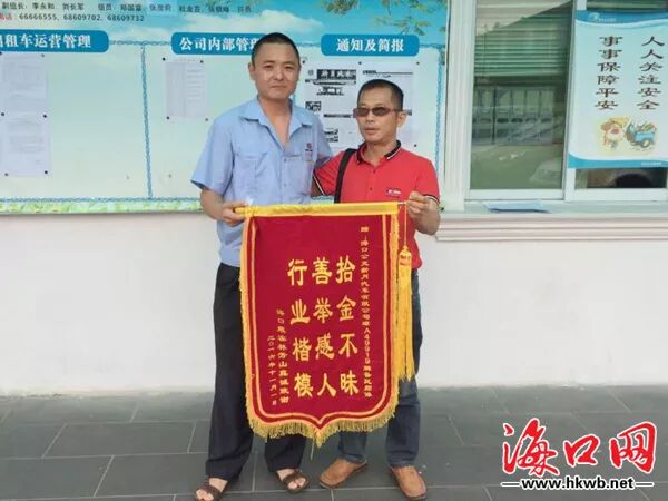2016年10月31日凌晨,海口“的哥”解备民收车回家时,无意在副驾驶座位下发现一个黑色的钱包,打开钱包后发现里面有大量的现金及许多卡证,解师傅当即给公司值班人员打电话登记报备,以便失主报失认领。而值班人员在钱包里面发现了一张望海国际广场的会员卡,辗转才联系上林先生。赶到公交公司的林先生十分激动,紧紧握住工作人员的手连声道谢。