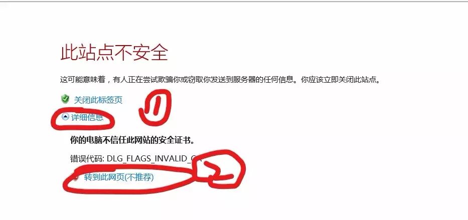 第二小步:点击转到此网页(不推荐) (这个没啥的,系统太不兼容,只能点击这个才能下一步)