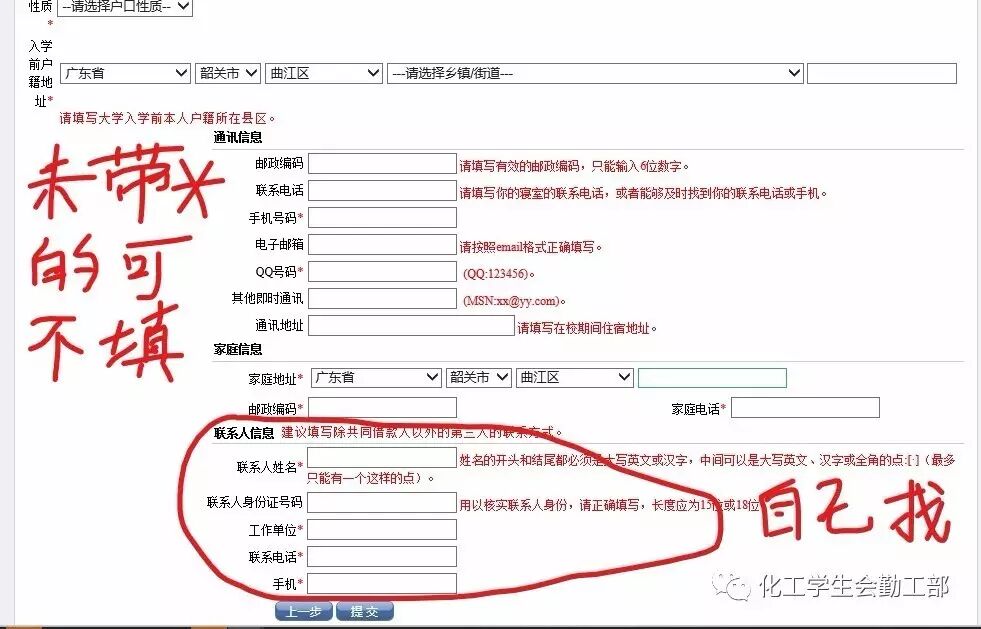 第一小步:如实填好点击提交,注意:没有*号可不填