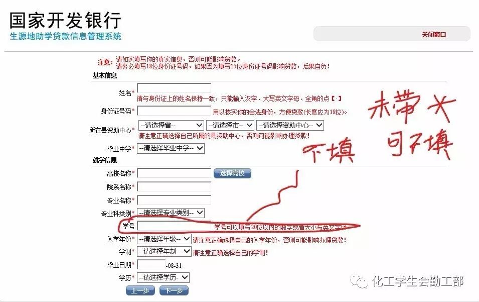 第二小步:点击注册进入该界面,把基本信息填好,学号不填