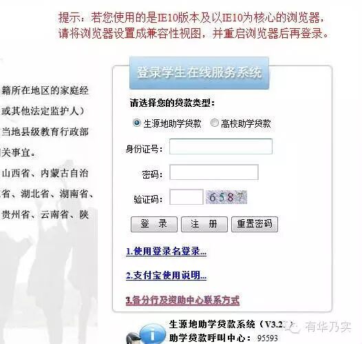 第二步,打开开发银行学生信息系统,点“学生在线服务系统(生源地)”,如下图: