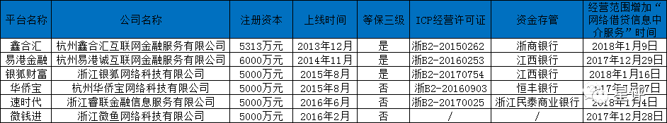 银行存管方面,浙江实行存管属地化要求,且需要通过中国互金协会的存管测评。目前,微钱进未实现银行存管,易港金融与银狐财富的存管银行在杭州并无分行,或许需要更换银行存管,鑫合汇的浙商银行、华侨宝的恒丰银行和速时代的浙江民泰商业银行满足存管属地化要求。