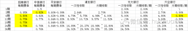各银行现金分期大多分为3期、6期、12期、24期、36期(每期为一个月),申请人再分期偿还,但需要支付一定的分期手续费。那么,哪家的手续费最低呢?信用卡分析师对招行、中信、平安、浦发、光大、兴业六家银行进行分析对比。