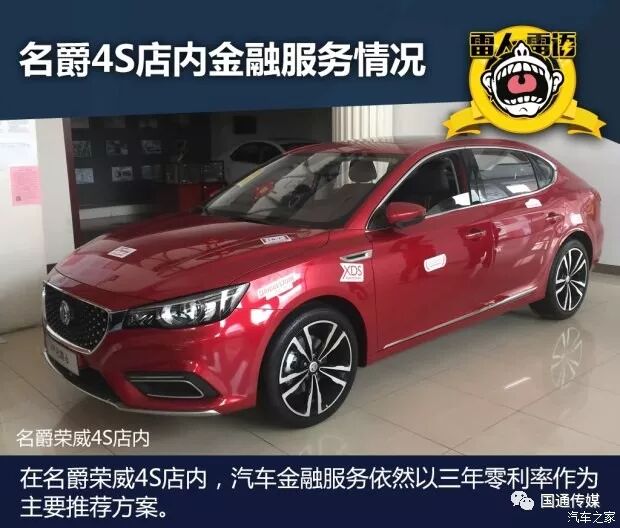 最后,我们选择了一家名爵4S店,店内销售在向我们介绍名爵6的同时,也简要介绍了贷款购车的好处以及优势,对于指导价为11.78万元的名爵6 2017款 20T 自动豪华智联版车型来说,首付50%就可以选择三年零利率的汽车金融服务方案,分期服务费用为3000元。