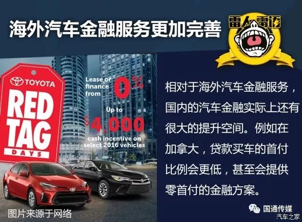 毋庸置疑,汽车金融服务在国内市场已经越来越成熟,其主要优势就是确实能够达到帮助车企刺激消费以及帮助消费者在可接受范围内缓解资金压力的问题。即便是这样,通过简单梳理雷哥发现国内的汽车金融服务相比海外,还是有着明显的区别。