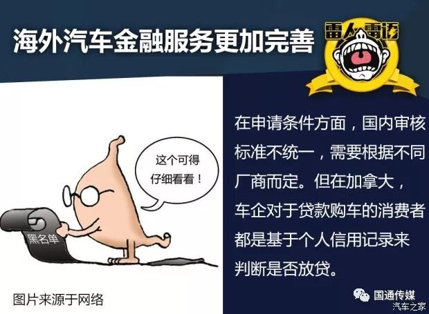 在申请条件方面,在加拿大贷款买车的审核资料大多都是参考个人信用记录来判断是否放贷,形式较为统一。在国内,厂商之间的审核条件会明显不同,有的需要出具房产证、流水单,有的仅需要身份证、医保卡,形式相对海外较为凌乱。