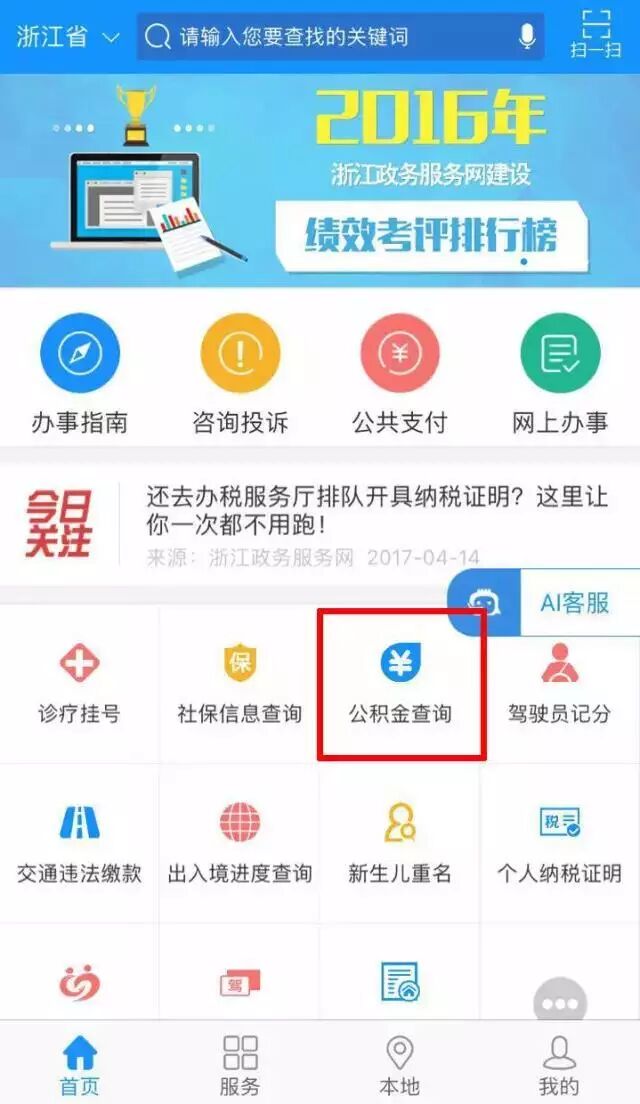 实名登录浙江政务服务网网页端,点击首页“热点服务”一栏的“公积金查询”即可。