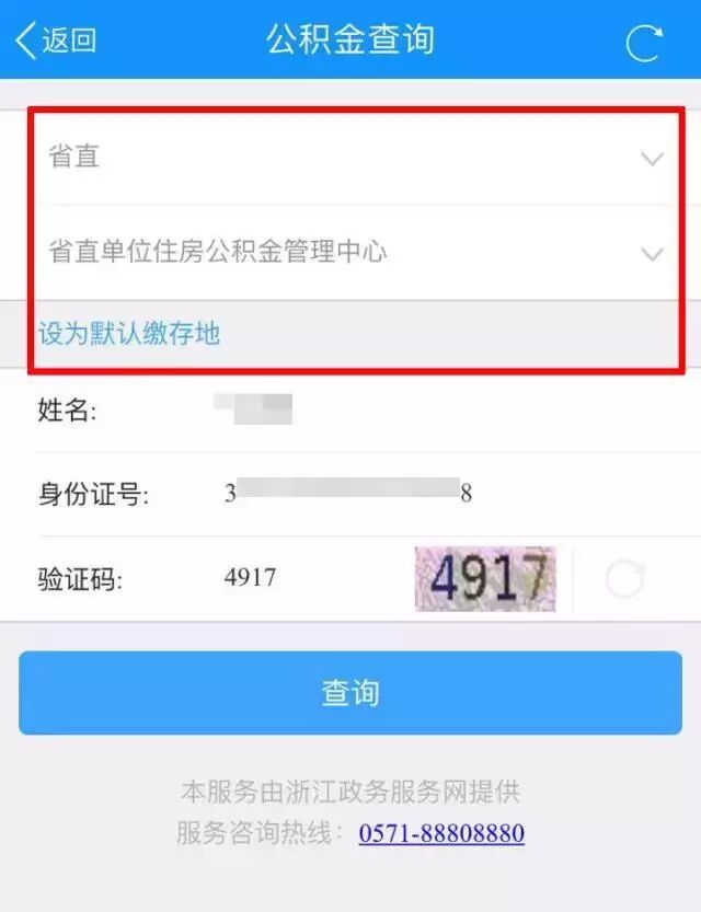 选择你的公积金缴存地,并输入验证码,点击“查询”。
