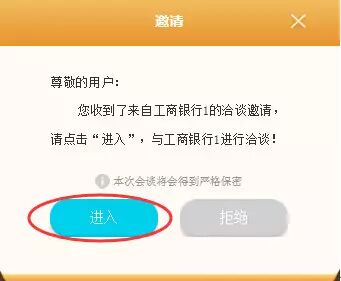 4、当有银行向用户发起会话时,用户的界面会弹出如下界面,用户可点击“进入”,如图: