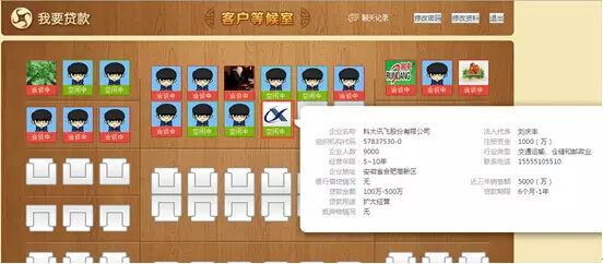 2、登录后进入如下图页面,鼠标移动至每个头像上,可查看个人(企业)提交的贷款申请的基本内容,如图: