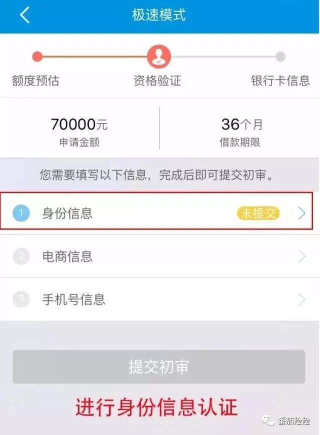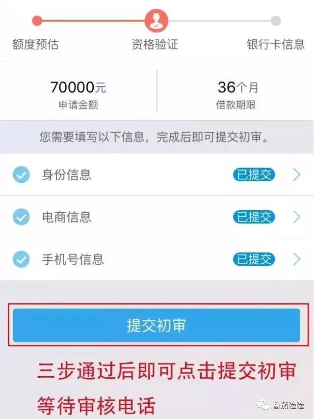 接下来确认贷款额度和贷款期限,一旦确认将不能更改,确认提交后将进入资格验证