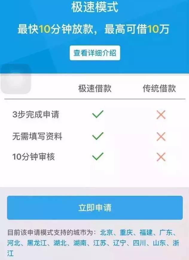 三、极速模式有地位限制:目前支持的地区为北京、重庆、福建、广东,河北、黑龙江、湖北、湖南、江苏、辽宁、四川、山东、浙江(先在信用环境好的地区推广?)