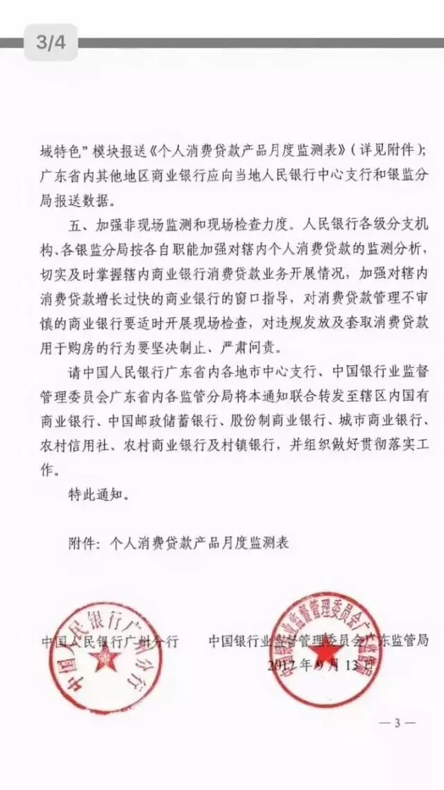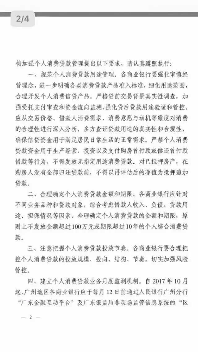 文件指出,今年以来,广东省部分地区和金融机构的个人消费贷款(包括短期消费贷款、中长期消费贷款、信用卡透支)快速增长,其中个别金额较大、期限较长的消费贷款与日常消费属性不匹配,存在违规流入房地产领域的风险,接下来要对金融机构个人消费贷款规范化管理。
