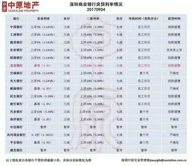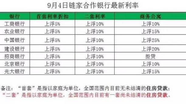 9月4日,深圳中原地产和链家纷纷发布了最新银行贷款利率。