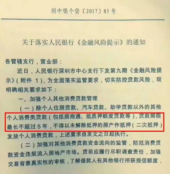 央行发布文件后,深圳首家银行已经通知执行个人消费贷最长5年,据知情人士透露,未来深圳其他银行也会陆续跟进。