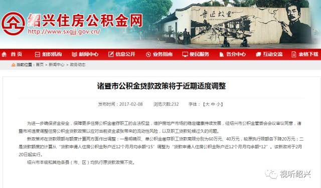 视听君赶紧咨询了绍兴市公积金,得到的回复是:绍兴市本级和其他各县(市、区)均执行原贷款政策不变。