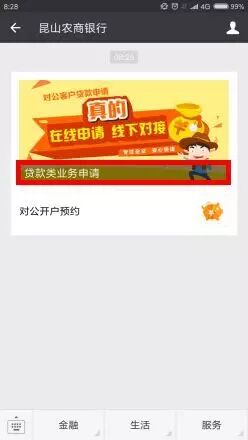 进入“昆山农商银行”微信公众号