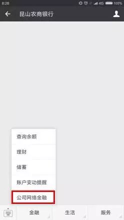 点击菜单“金融”——“公司网络金融”