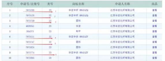 2010年1月初,江苏华亚化纤公司开始申请“华亚中纤”等文字、图形共6件商标;