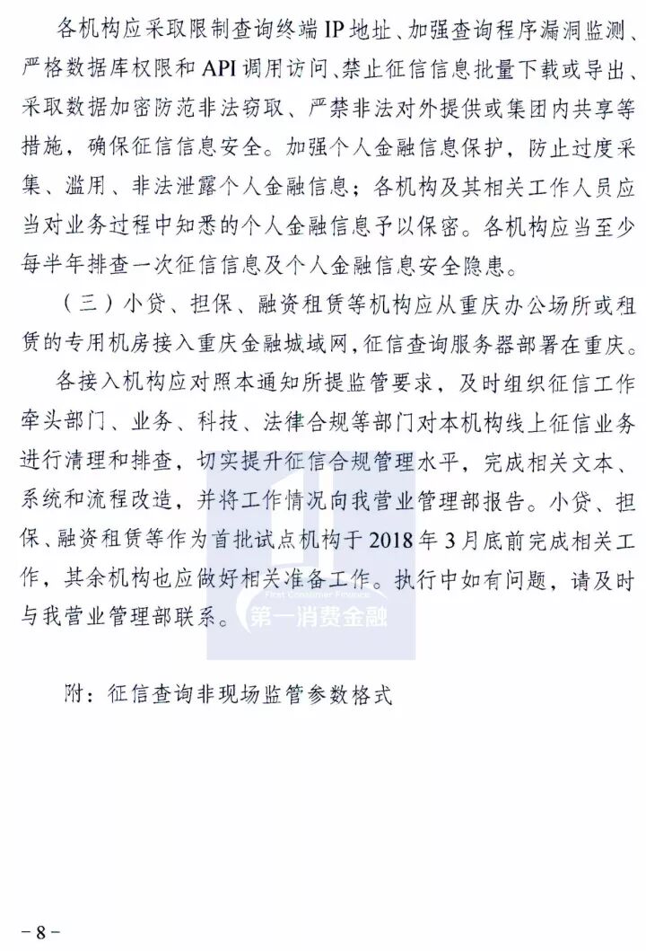因此,人行重庆营业部下发通知的目的是,规范和统一辖区接入机构线上征信业务标准和要求,加强信息安全管理,防范金融风险。