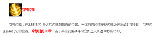 解析:这个符文在小编看来是这一类别的符文最值得选择的一个符文了,在你的闪现处在冷却时间之中的时候,引导闪现就会替代它的位置,并且这个技能只有20秒的闪现时间,相当于20秒一个闪现,就问你恐怖不恐怖。不过大家要注意的是,这个符文有2.5秒的引导时间,也就是说,引导闪现你并不能够在正面使用,但是对于很多没有位移的英雄来说,这个技能对于他们GANK翻墙具有非常强大的好处,适合没有位移的英雄使用。