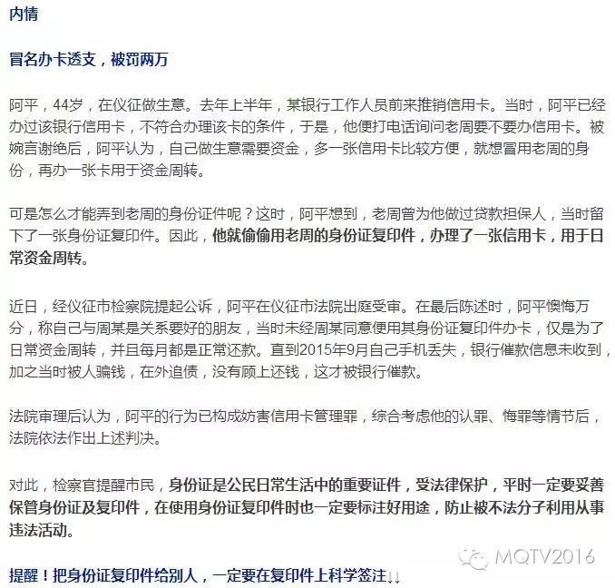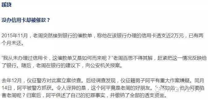 没办过信用卡,却被催款称已透支近两万元。这样的蹊跷事被江苏仪征居民老周遇上了。警方侦破此案后,他才知道,自己的身份证复印件被好友阿平利用,偷偷办了信用卡。近日,阿平因犯妨害信用卡管理罪,。