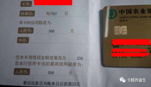 14年5月2日网申了第一张农行卡,一个星期后征信通过,当时查到申请进度通过心里很兴奋毕竟是第一次网申农行信用卡,连忙打电话给人工客服查询额度,客服说500元,以为自己没听清楚,再三又向客服确认,“有没有搞错,500元这么低?现在物价上涨,买菜都不够!“客服很淡定的又重复了几遍,“先生,系统显示的确实是500元”,一听到500心都凉了,随机挂断了客服电话。大概等了一个多星期网点通知领卡,跑到网点领取了500菜卡,犹豫了许久才再农行大妈的建议下,说多刷卡有利于提额才激活。下图就是当年那张菜卡,给大家瞧瞧!