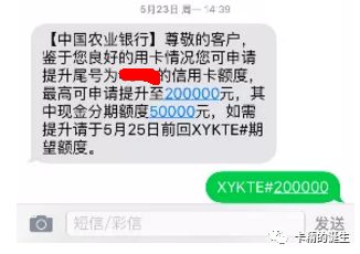 本以为就此毕业了,结果农行在16年5月份又发来了短信邀请提额到20万,按要求回复了短信,本来没抱什么希望,因为毕竟农行之前搬的砖都撤了,结果过了一两个星期惊喜来了,顺利提到20万!
