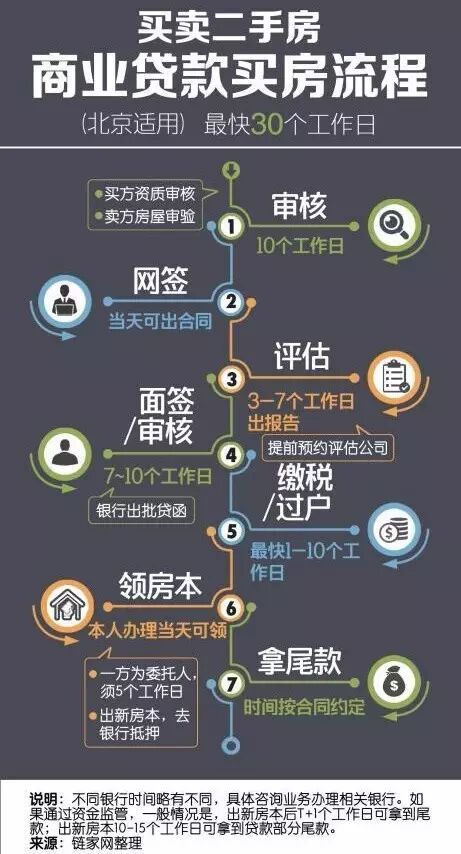 银行按照借款合同约定,将贷款一次或分次划入卖方在贷款行开立的存款账户内。商业贷款买房流程见下图: